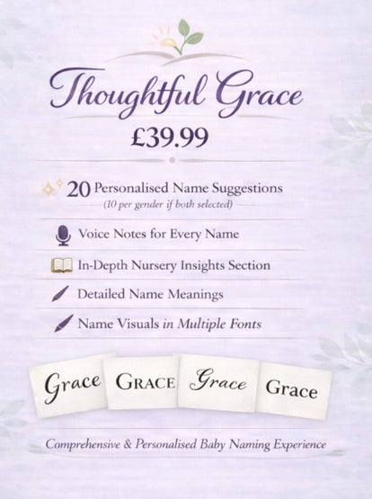 Welcome to Graceful Beginnings, where the journey to finding your baby's perfect name is as special as they are. As a qualified nursery practitioner with a passion for nurturing, I understand the profound impact a name holds. We offer bespoke naming packages, crafted with care, connecting each name to its beautiful meaning and how it harmonises with their future. Let's embark on this meaningful adventure together.